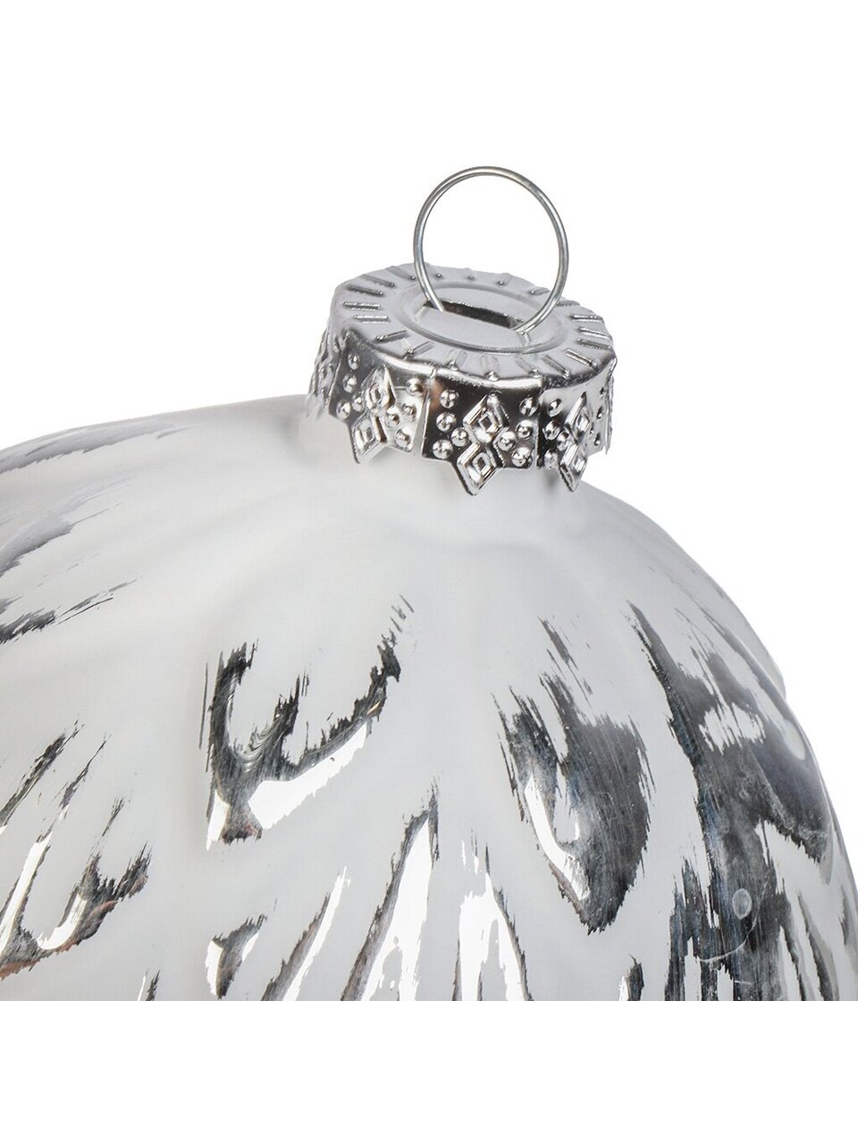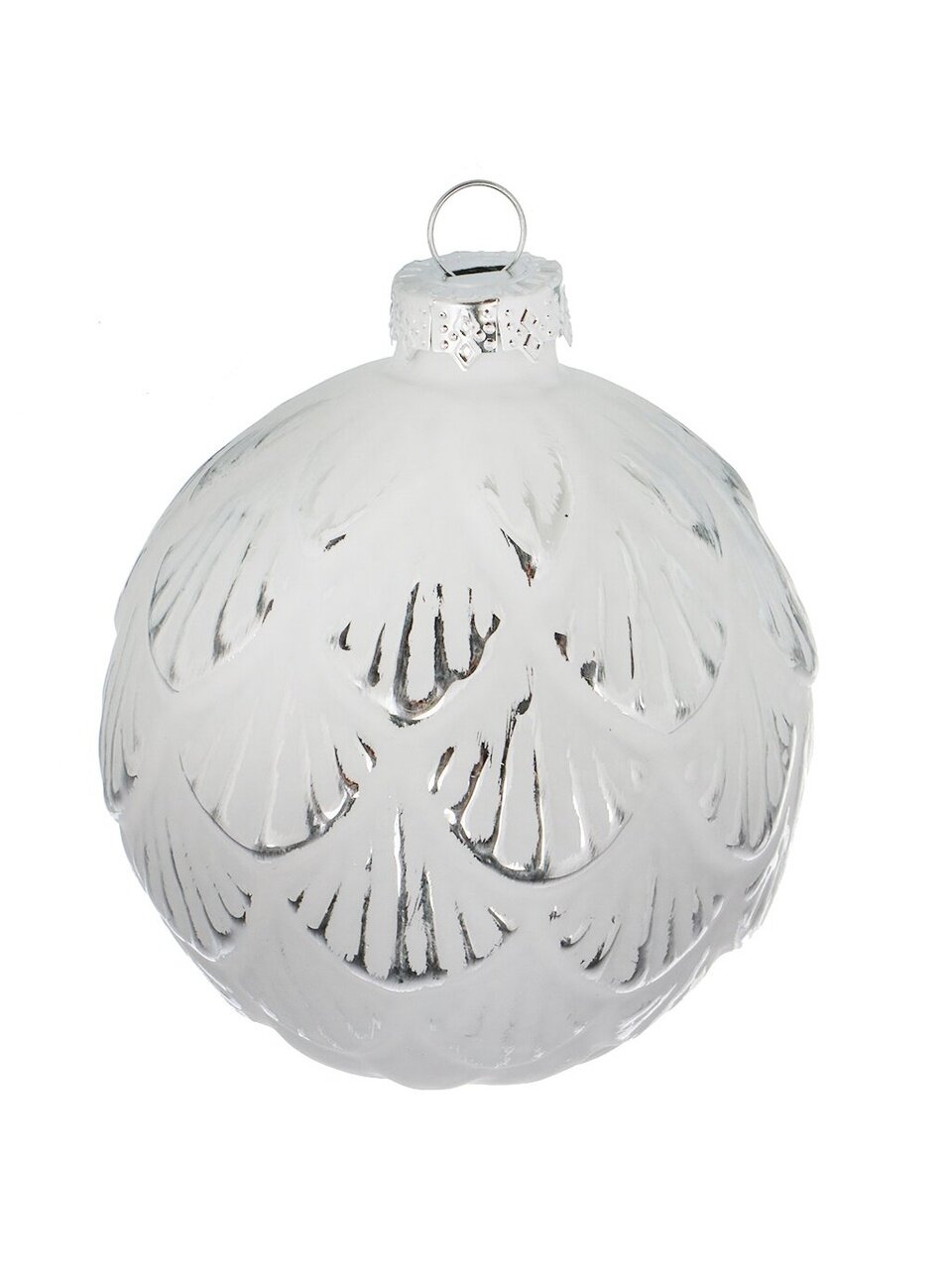 - Эксклюзивный дизайн: однотонный белый елочный шар с серебристым декором гармонично впишется в классический и современный интерьер.