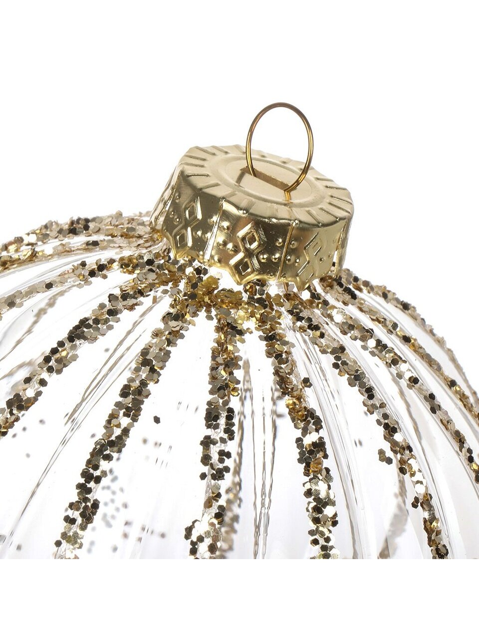 Елочный шар «Грани», прозрачный с золотым блеском, выполнен из стекла и отлично подходит для украшения как искусственной, так и живой елки. Благодаря среднему размеру (10 см) этот шар гармонично впишется в классические и современные новогодние композиции, не перегружая ветки и не теряясь среди других украшений. Покрытие с блестками устойчиво к выцветанию и не осыпается при аккуратном использовании.