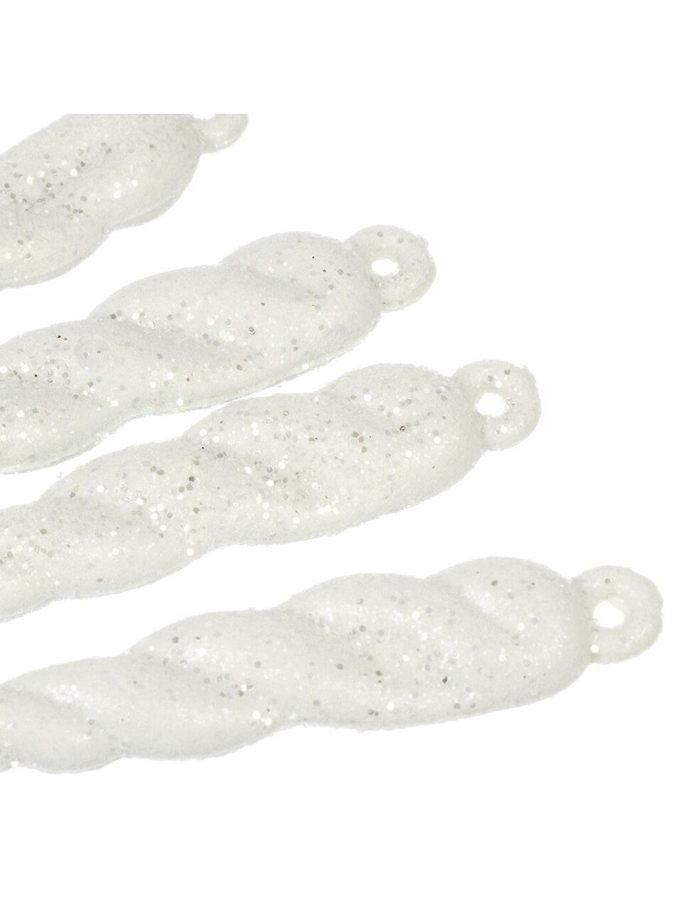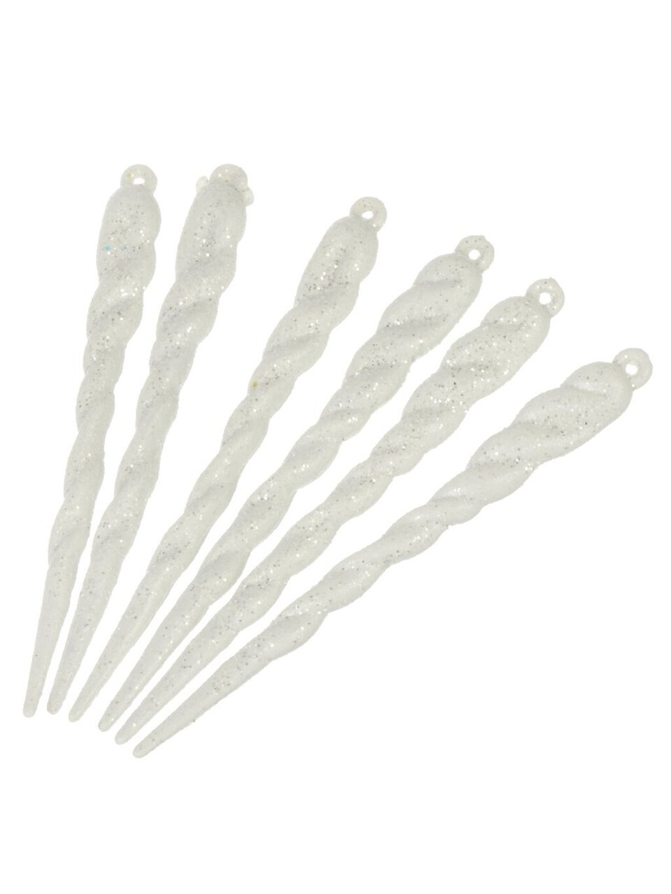 Каждая сосулька — белого цвета, высота 12 см, материал — полимер с глянцевыми блестками, тип крепления — подвеска, количество в наборе — 6 штук.