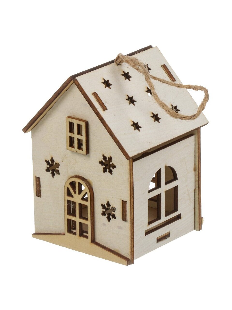 Эко-елочное украшение «Домик» 6x8,5 см с подсветкой: стильный декор из МДФ для дома и улицы. Безопасно, долговечно, подходит для подарка.