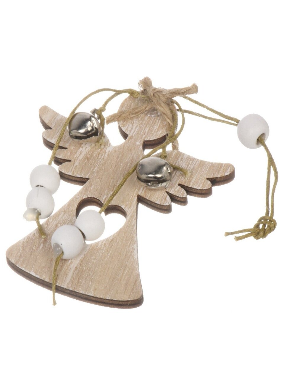 Елочное украшение «Ангел» из эко-коллекции: стильный декор из МДФ 8x6.5 см для дома и уличной елки. Не бьётся, подходит для подарка и семейного праздника.