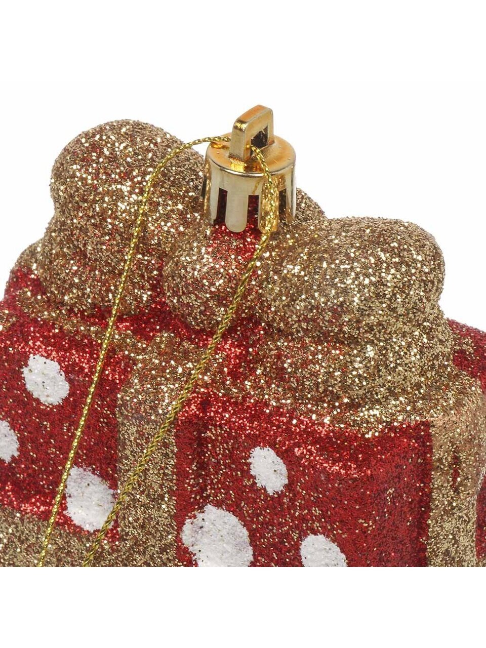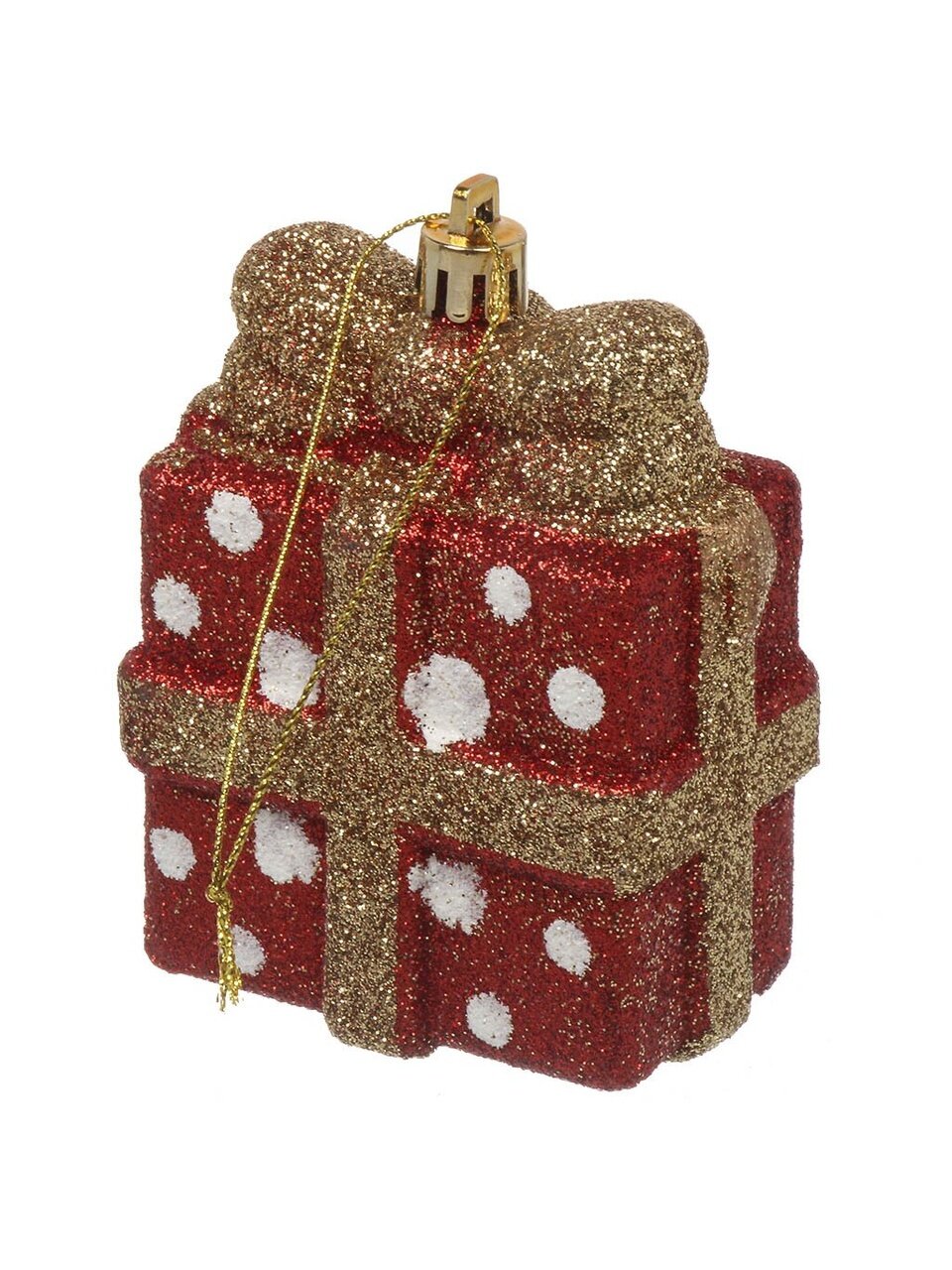 Яркое елочное украшение «Подарок» (6.5x4.5x9.5 см, пластик, с блестками): стильный акцент для новогоднего декора, безопасно даже для детей и животных.