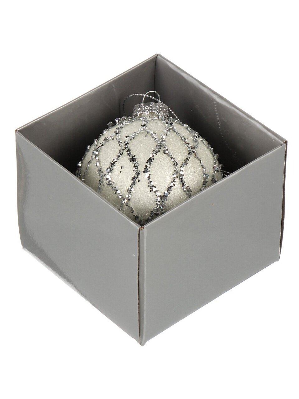 Шар идет в индивидуальной коробке, что удобно для подарка. Стекло с блестками выглядит празднично, не теряет яркости, подходит для разных сценариев — дома, офиса, дачи.