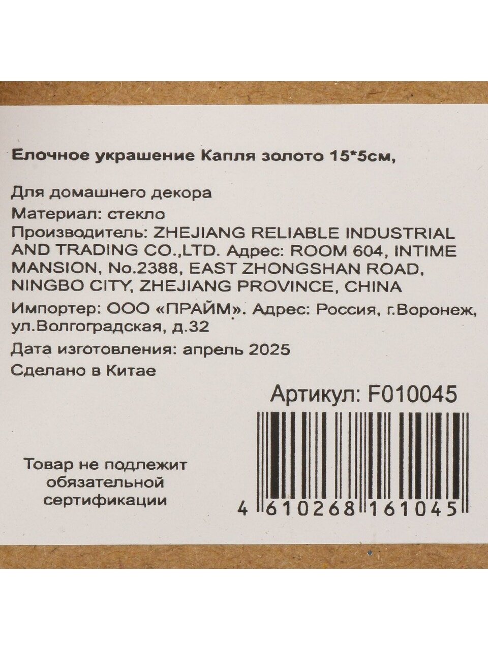 Елочное украшение Капля золотого цвета — это современное решение для тех, кто ищет, как выбрать эффектное, но недорогое украшение для новогодней ёлки. Благодаря прочному стеклу и ручному нанесению блестящего покрытия, игрушка выглядит дорого и стильно, не теряя актуальности несколько сезонов подряд. Если вы спрашиваете, чем отличается стеклянное украшение от пластикового, — стекло лучше отражает свет гирлянд, создавая яркие акценты в интерьере.
