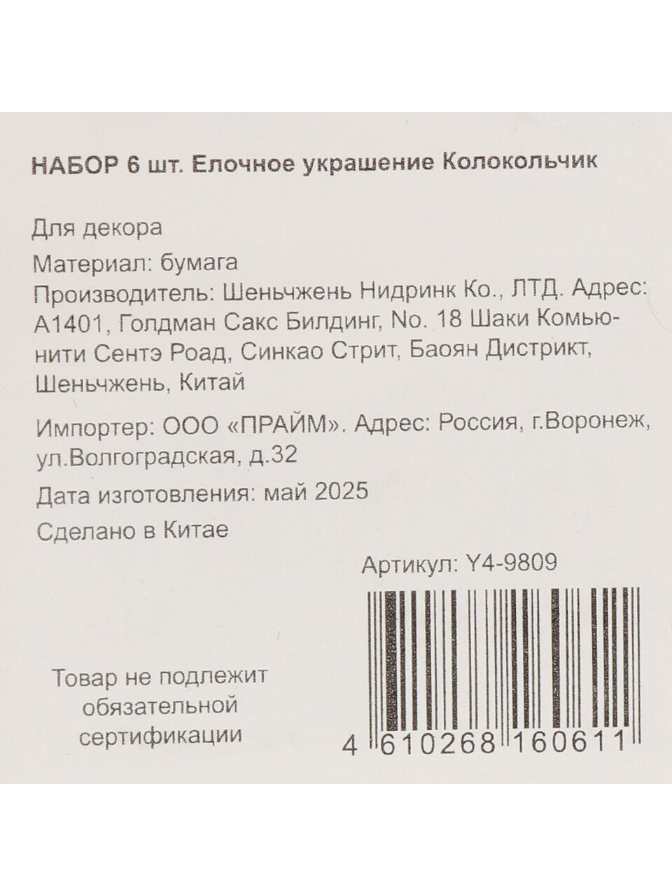 Выбирайте набор из 6 бумажных колокольчиков с блеском — выгодно купить недорого елочные игрушки для дачи, дома или подарка. Закажите сейчас и создайте неповторимую атмосферу праздника без лишних затрат.