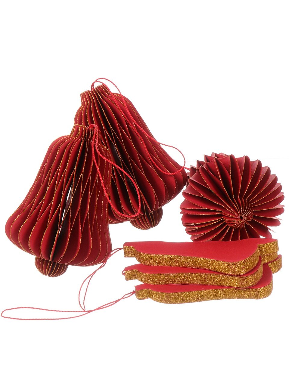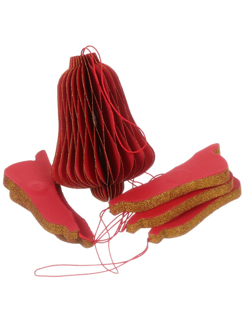 Яркий набор из 6 бумажных колокольчиков с красным блеском — стильное и безопасное елочное украшение для дома, дачи и подарков. Не бьётся, не выгорает, подходит для детей!