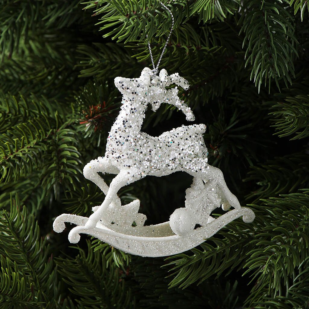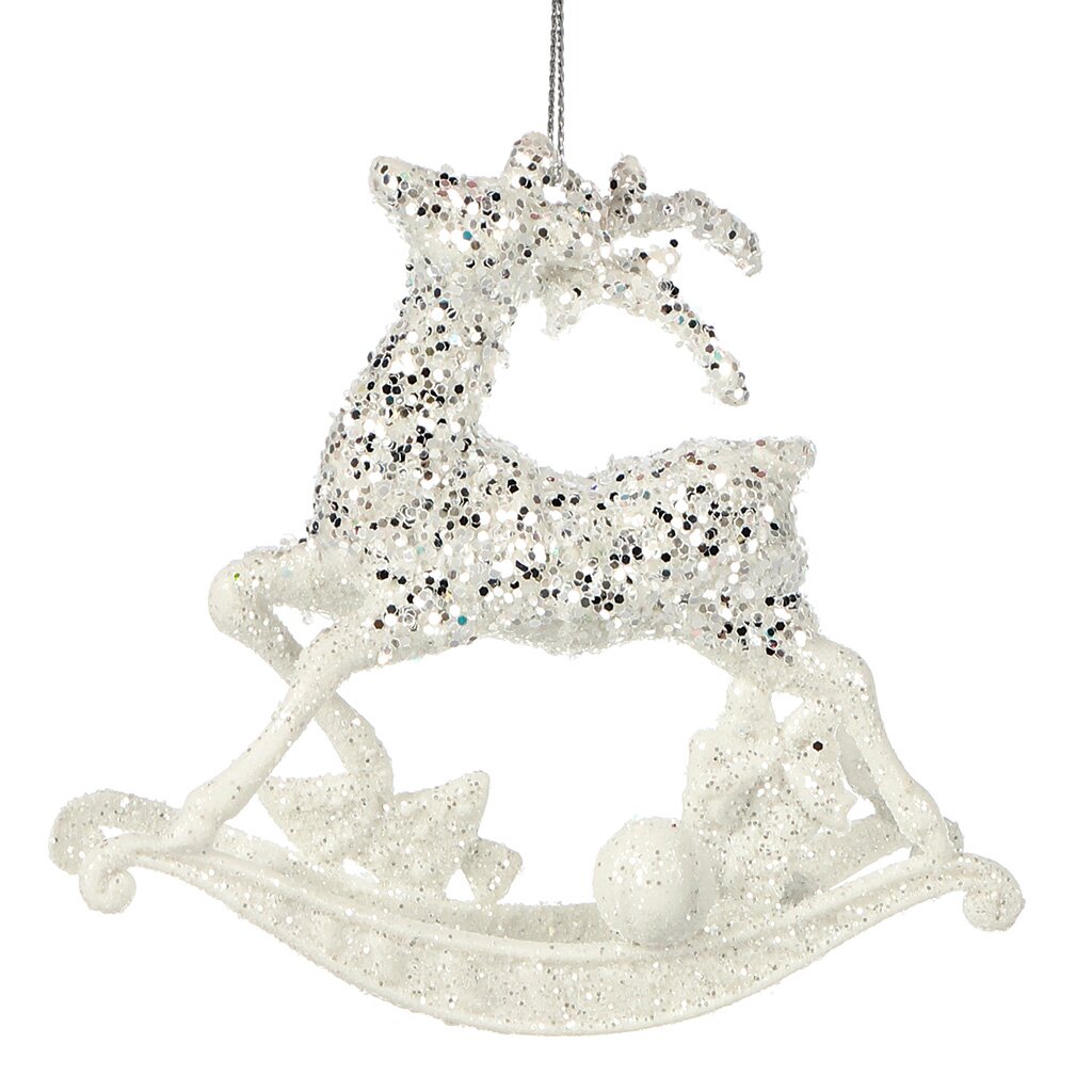 Элегантное елочное украшение "Олень" (белый с серебром, 11 см): стильная защита от разбитых игрушек для дома, улицы и подарков — прочный пластик, блеск и универсальность.