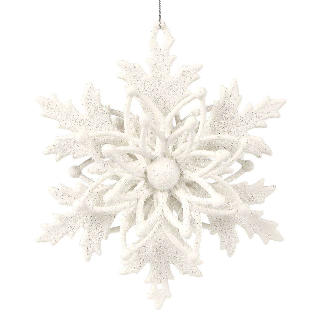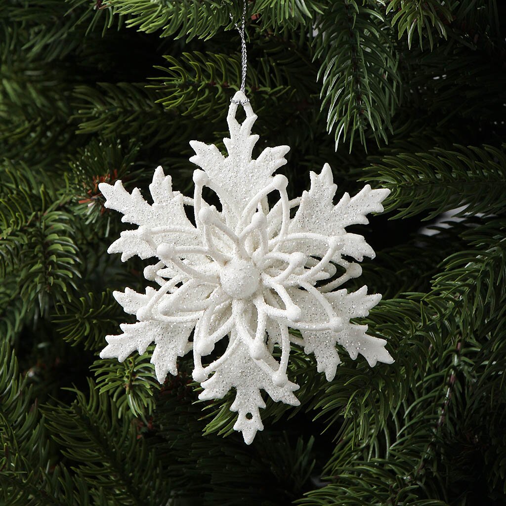 Белая пластиковая снежинка 12 см — стильное и безопасное украшение для ёлки, идеальный выбор для дома, улицы и подарка. Небьётся, блестит, легко крепится.