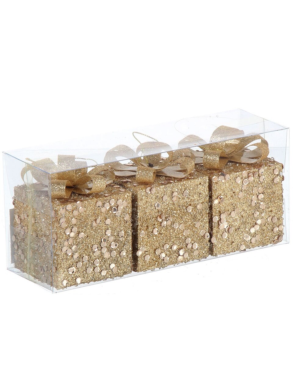 Набор елочных украшений «Подарки» (золото, 6 см, 3 шт, Y4-9495) — стильное решение для эффектного и безопасного декора дома или дачи. Небьющиеся, подходят для семей с детьми.