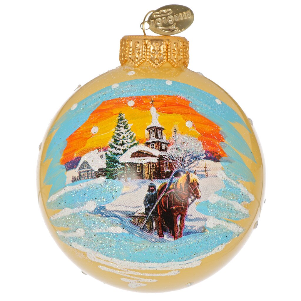 Елочный шар «Зима.Крестьянин», 8 см, ручная роспись: стильный акцент для новогоднего декора, премиальное стекло, идеален для подарка и коллекции.