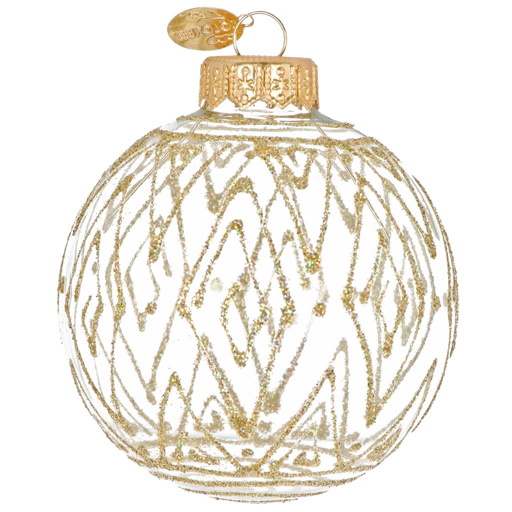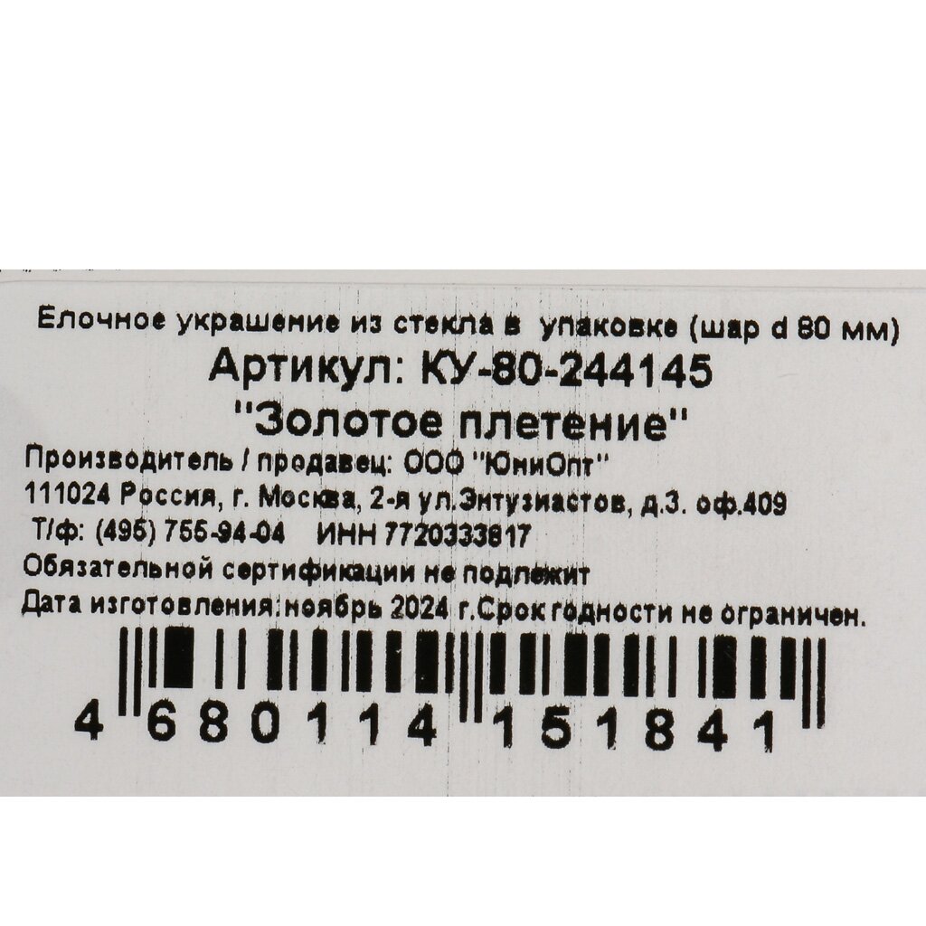 Елочный шар Золотое плетение, 8.5 см, стекло, КУ-80-244145