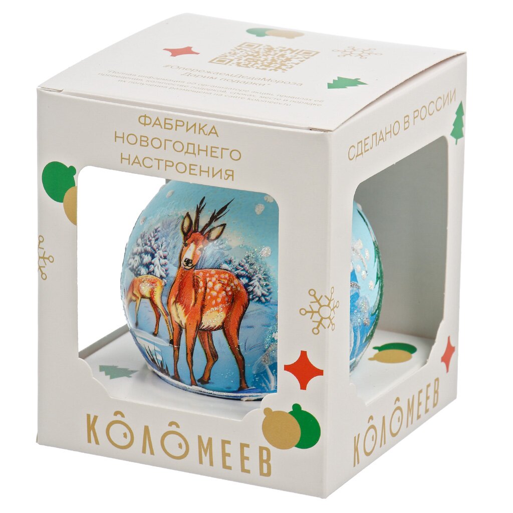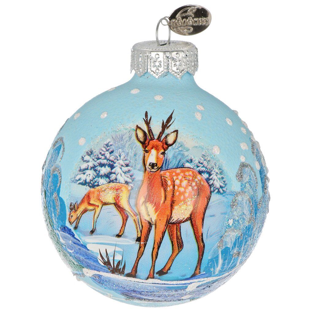 Елочный шар "Лесной олень 2" 8 см из стекла: эффектная ручная роспись, безопасная упаковка, идеален для подарка и стильного декора дома.