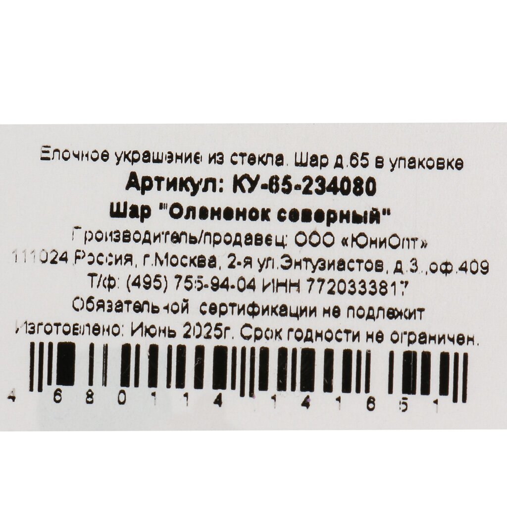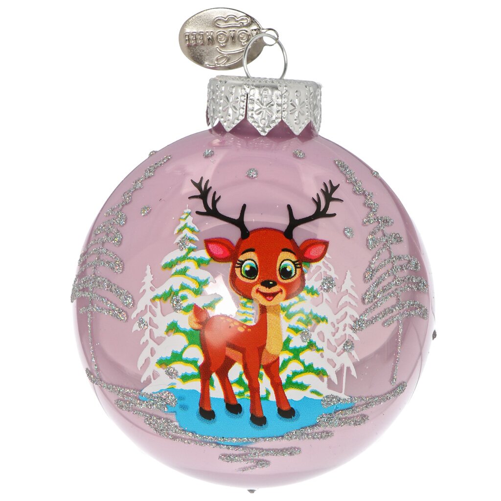 Елочный шар Олененок северный, 6.5 см, стекло, КУ-65-234080