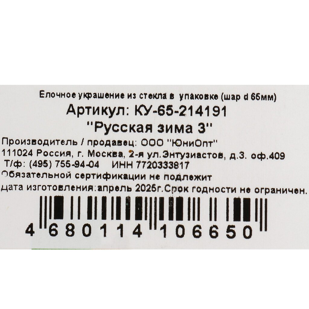 Вы можете приобрести «Елочный шар Русская зима 3, 6.5 см, стекло, КУ-65-214191» и другие товары в нашем интернет-магазине в Шахтах по низким ценам и с бесплатным самовывозом.