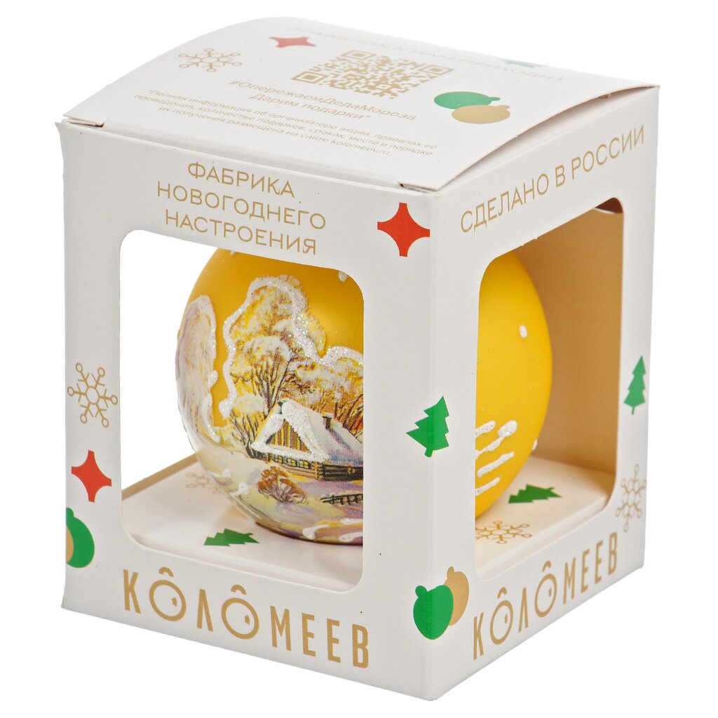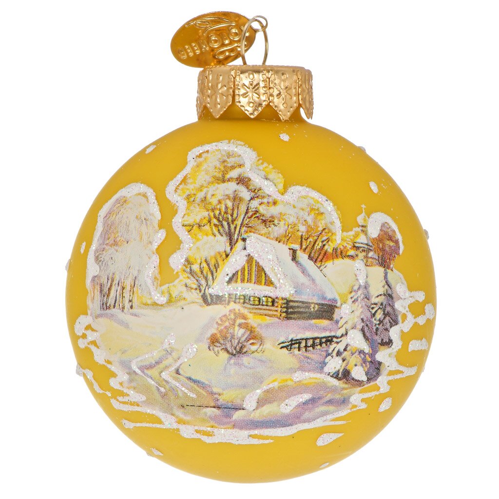 Елочный шар Русская зима 3, 6.5 см — ручная роспись, стекло премиум-класса, идеален для стильного новогоднего декора и подарка ценителям традиций.