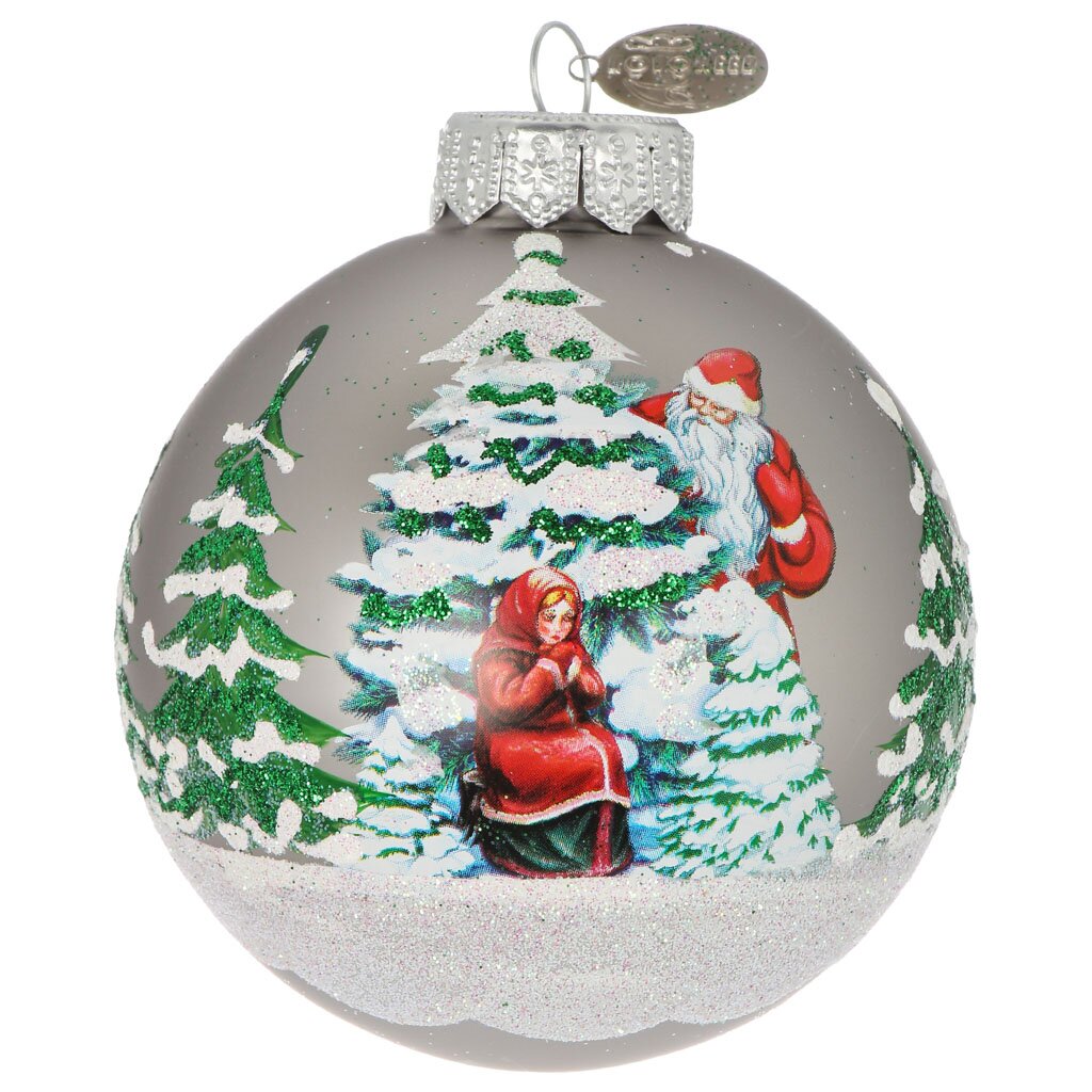 В отличие от изделий из пластика, стеклянный шар Сказка с ручной росписью и блестящим покрытием выглядит более эффектно и долговечно, не выцветает и сохраняет презентабельный вид годами.