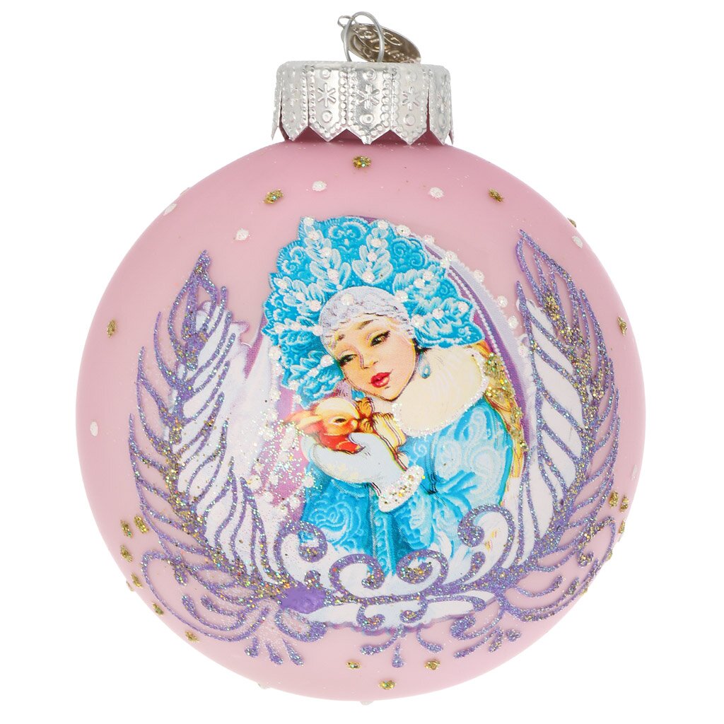 Елочный шар Снегурочка с зайкой, 10 см, стекло, КУ-100-244048