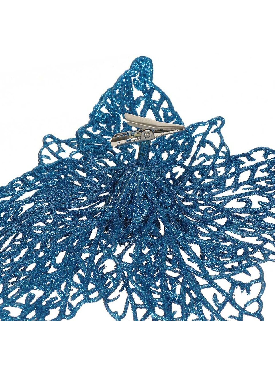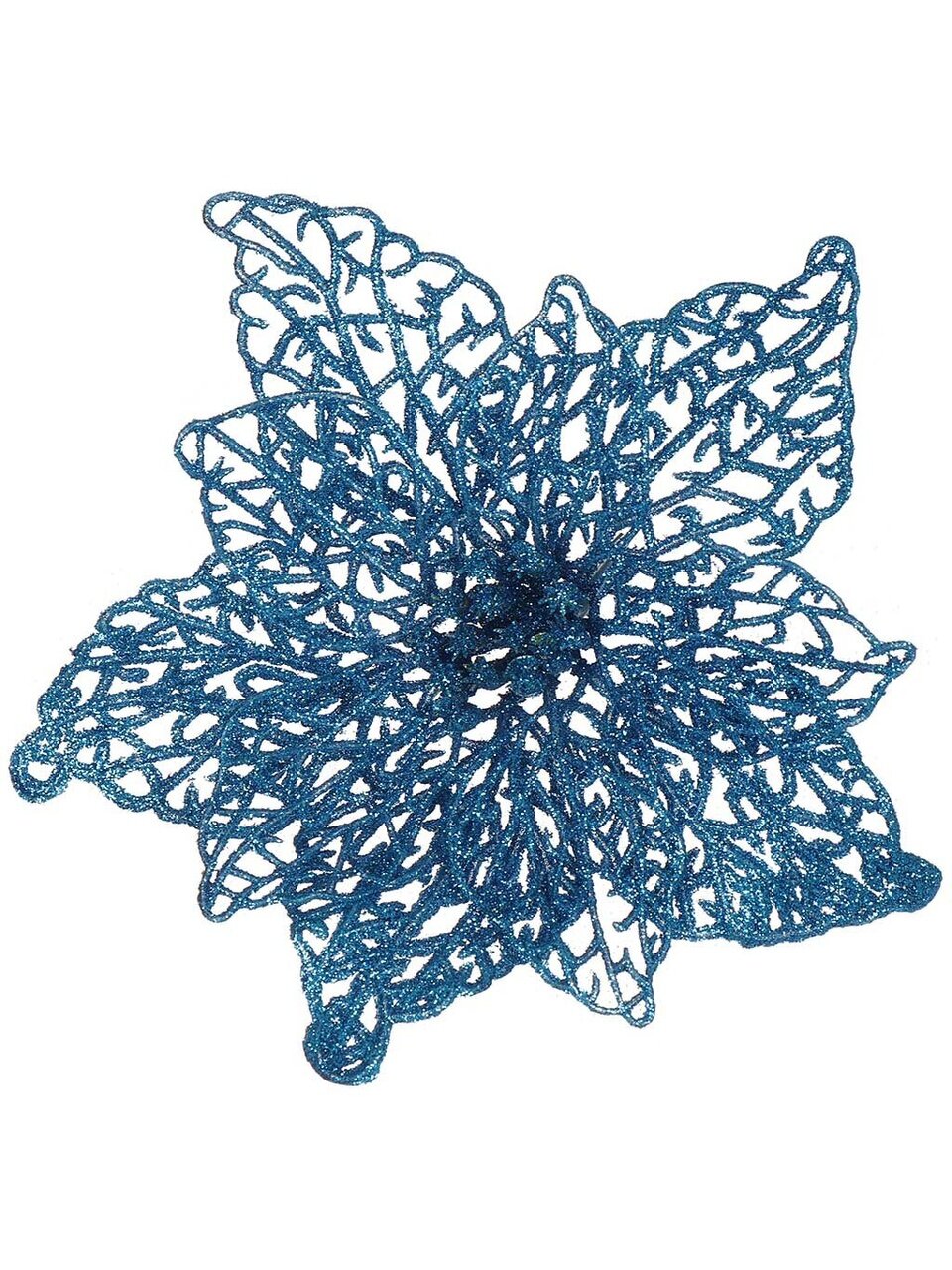 Елочное украшение Пуансеттия, синий ажур, 15 см — стильный акцент для новогодней ёлки. Безопасно, не бьётся, легко крепится, подходит для улицы и дома.