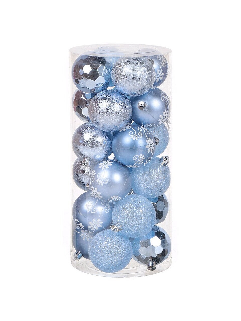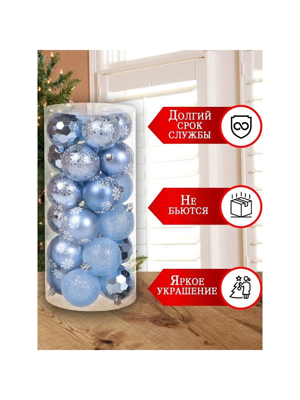 Елочные шары 24 шт, голубые, 6 см — стильное решение для украшения дома и дачи. Небьющийся пластик, блестящее покрытие, безопасно для детей и домашних животных.