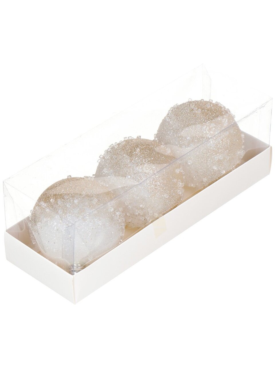 Елочные шары 3 шт, шампань, 8 см — безопасный декор для дома и улицы: небьющийся пластик, модный цвет, удобный набор для стильного праздника без лишних затрат.