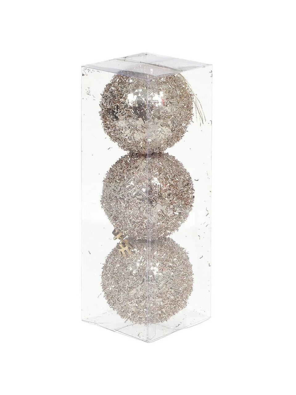 Елочные шары 3 шт, шампань, 8 см — востребованный вариант для тех, кто ищет недорогой и долговечный новогодний декор. Пластик с блестками устойчив к повреждениям, не бьется, что особенно важно для семей с детьми и питомцами. Цвет шампань — актуальный тренд последних сезонов, подходит для классических и современных интерьеров, а также для оформления уличных елок.