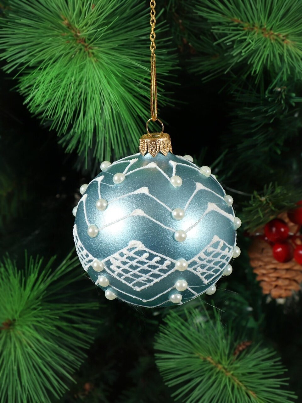 Елочный шар 8 см из стекла с ручной росписью — эксклюзив для стильного декора и подарка; оригинальный дизайн, безопасная упаковка, доставка по России.