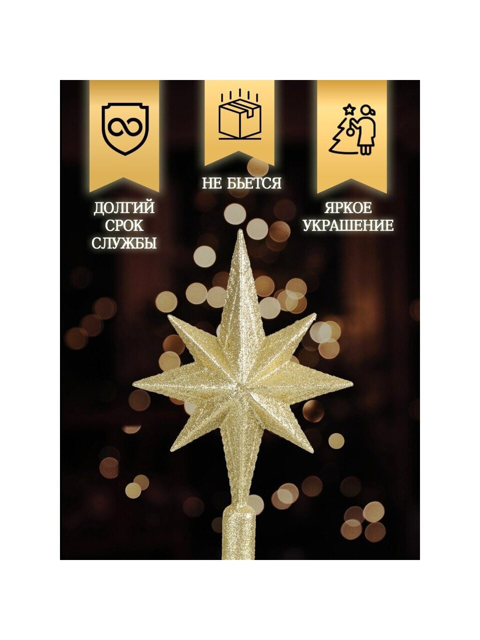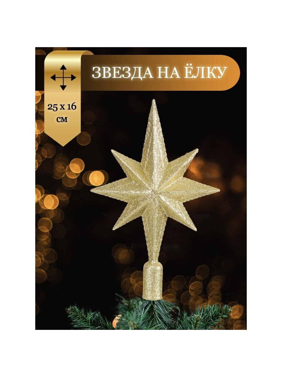 Верхушка на елку Звезда золотая 25х16.5 см — эффектный акцент для новогоднего декора, который не разобьётся и легко крепится на любую елку. Выгодное решение для дома и улицы.