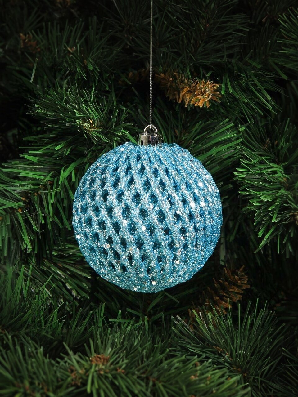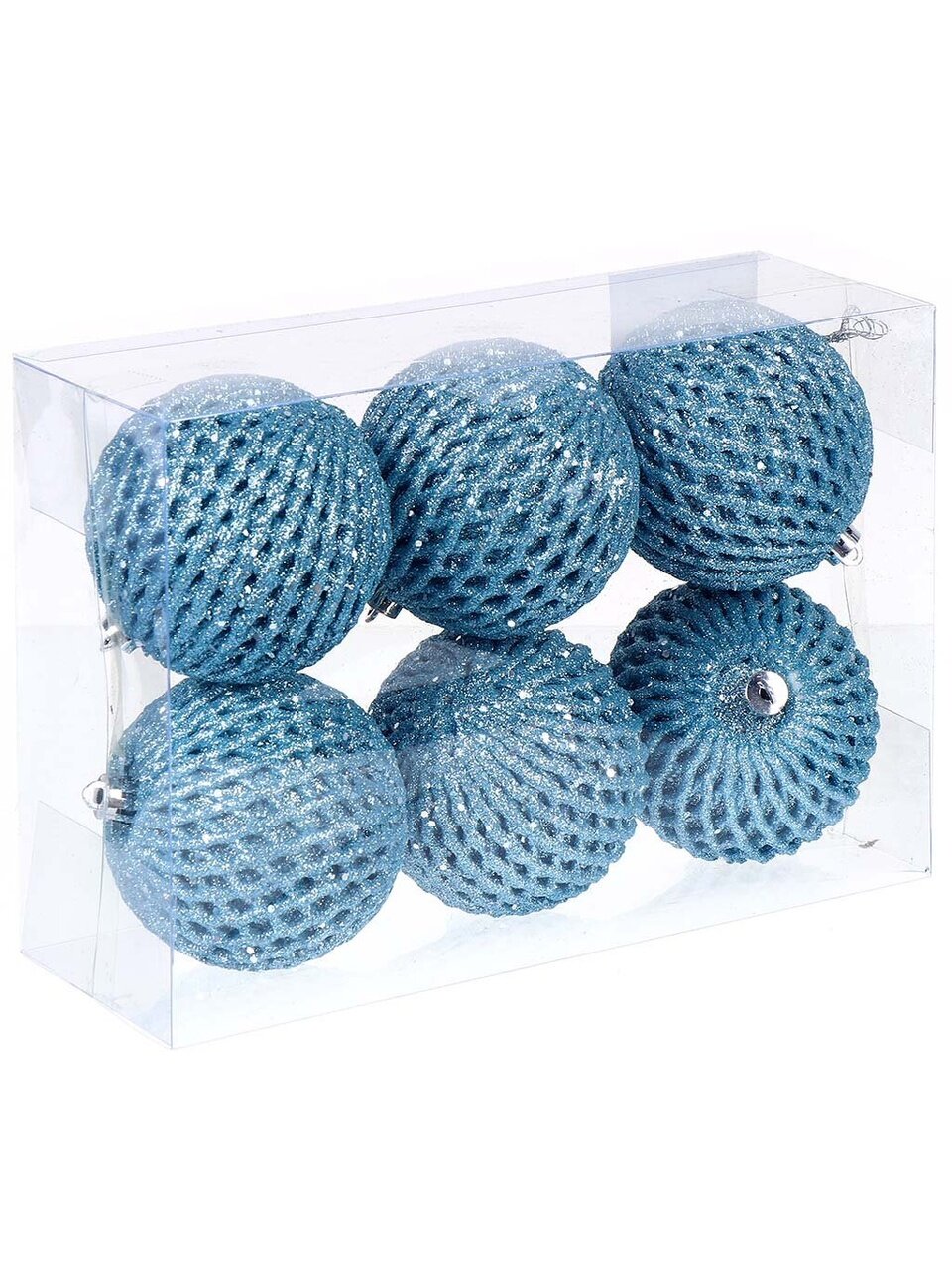 Елочные шары 8 см, бирюза, 6 шт — стильный набор для яркого новогоднего декора дома и улицы. Не бьются, подходят для подарка и семейных праздников.