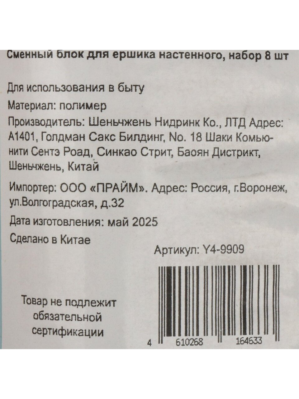 Выбирайте сменный блок для ершика настенного Y4-9909, если цените гигиену, экономию и удобство. Закажите набор 8 шт. — получите быструю доставку и гарантию соответствия описанию.
