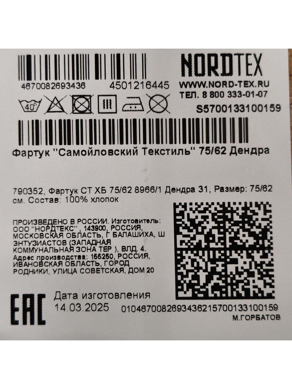 Вы можете приобрести «Фартук 62х75 см, 100% хлопок, 100% хлопок, без кармана, Самойловский текстиль, Дендра» и другие товары в нашем интернет-магазине в Армавире по низким ценам и с бесплатным самовывозом.