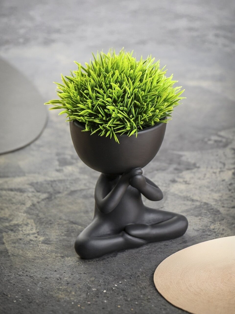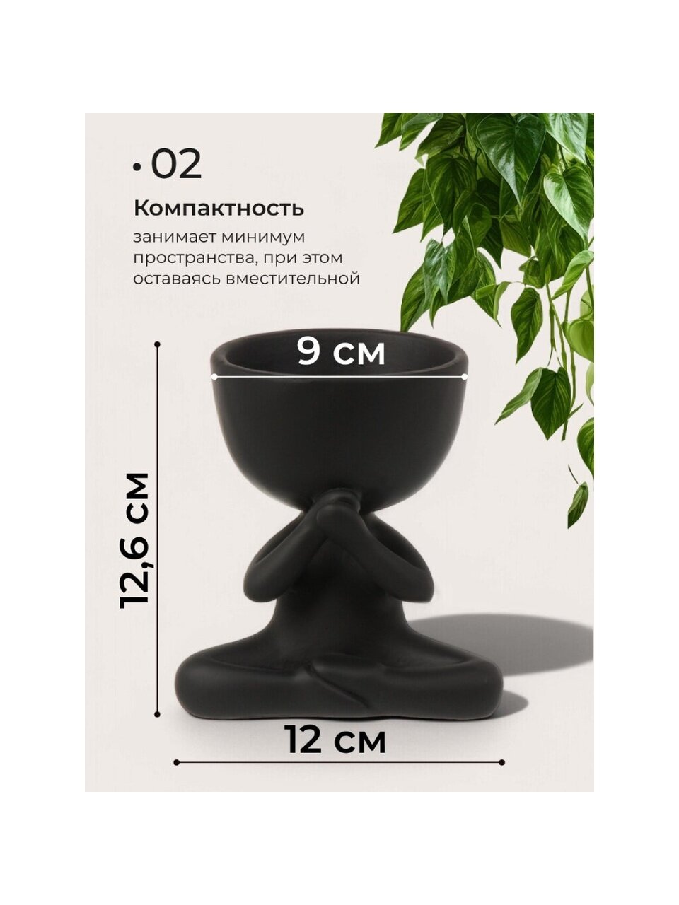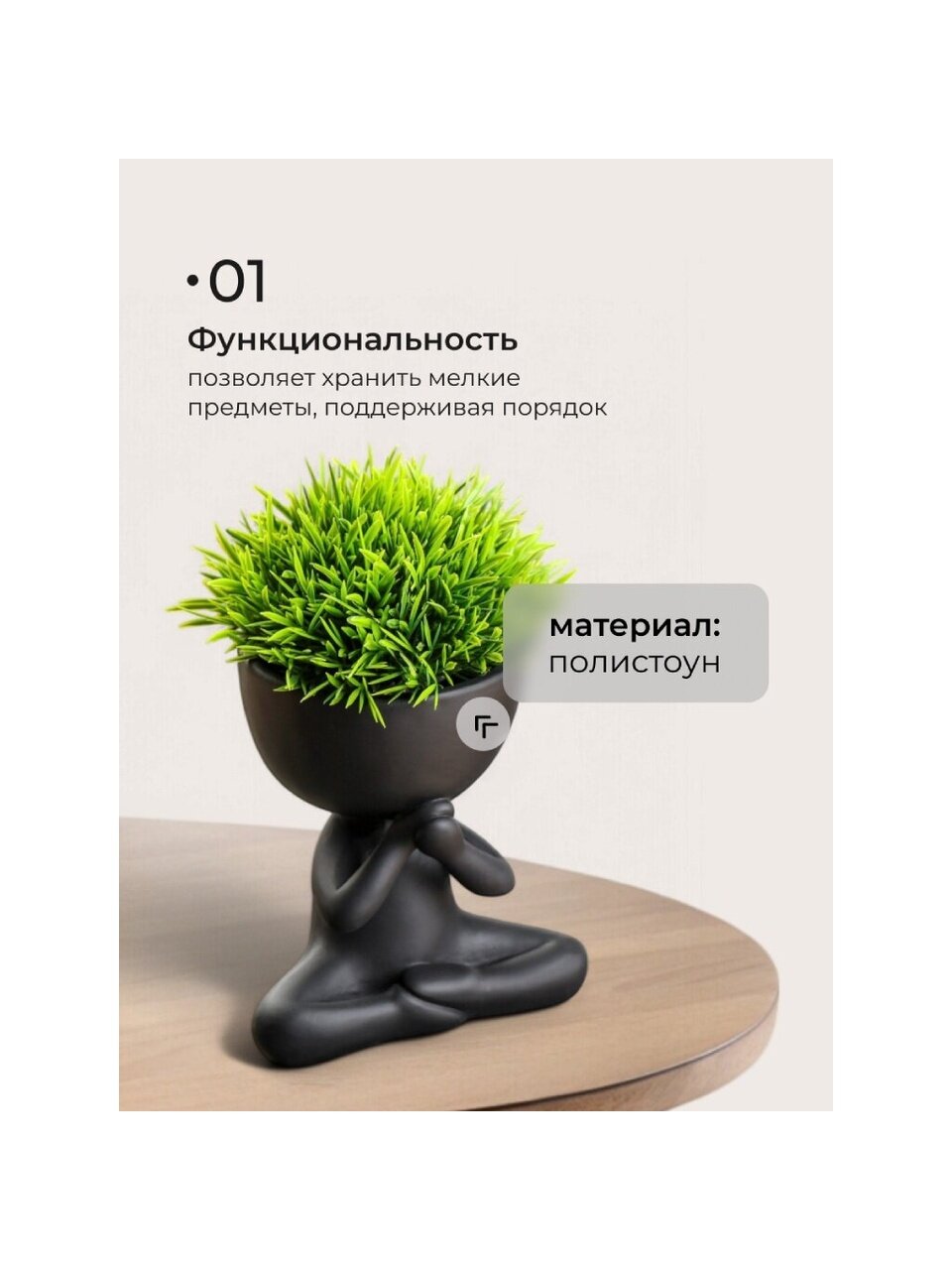 Фигурка-органайзер "Кашпенок" станет стильным и функциональным дополнением рабочего стола или домашнего интерьера. Изготовленная из полистоуна, она не только привлекает внимание своим современным дизайном, но и выполняет практическую функцию органайзера. Черный цвет добавляет элегантности и универсальности, позволяя легко вписаться в любой интерьер.