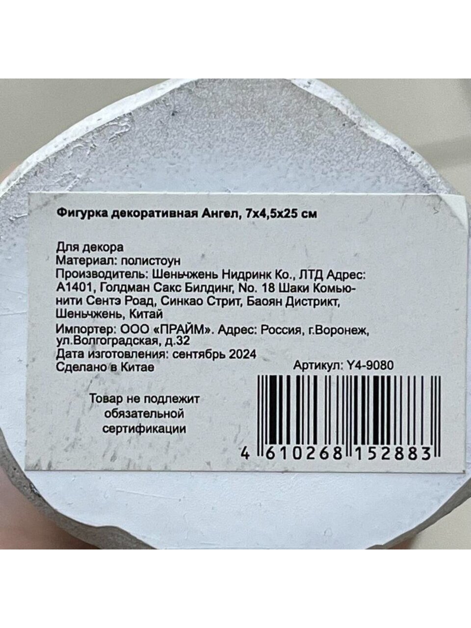 Эта декоративная фигурка "Ангел" размером 7х4.5х25 см станет прекрасным дополнением к вашему дому или офису. Ее элегантный дизайн и утонченные детали привлекут внимание гостей и создадут атмосферу уюта и тепла. Продукт произведен в Китае и отвечает всем стандартам качества, что гарантирует его надежность и долговечность.