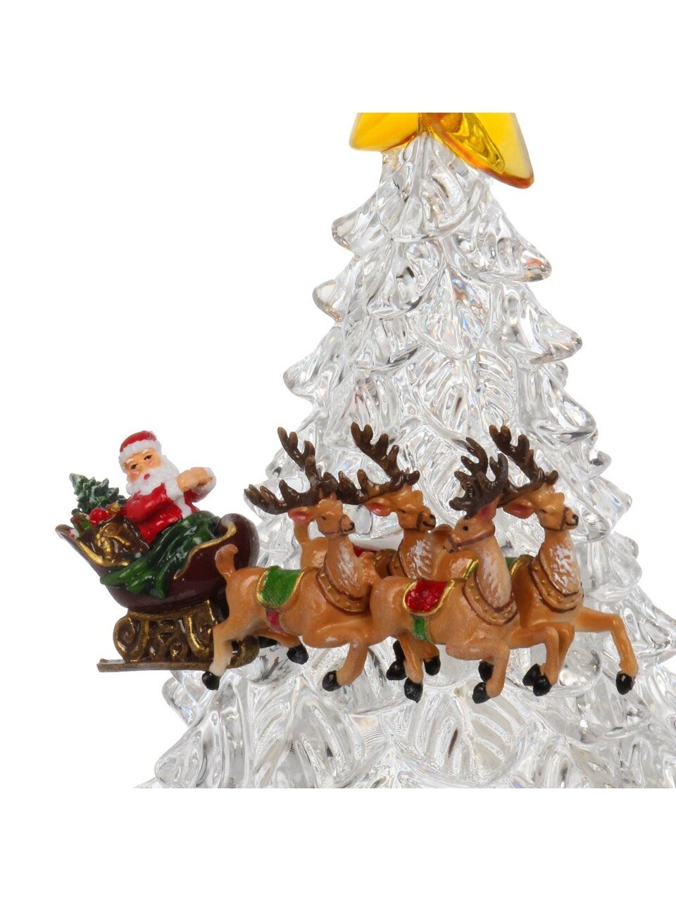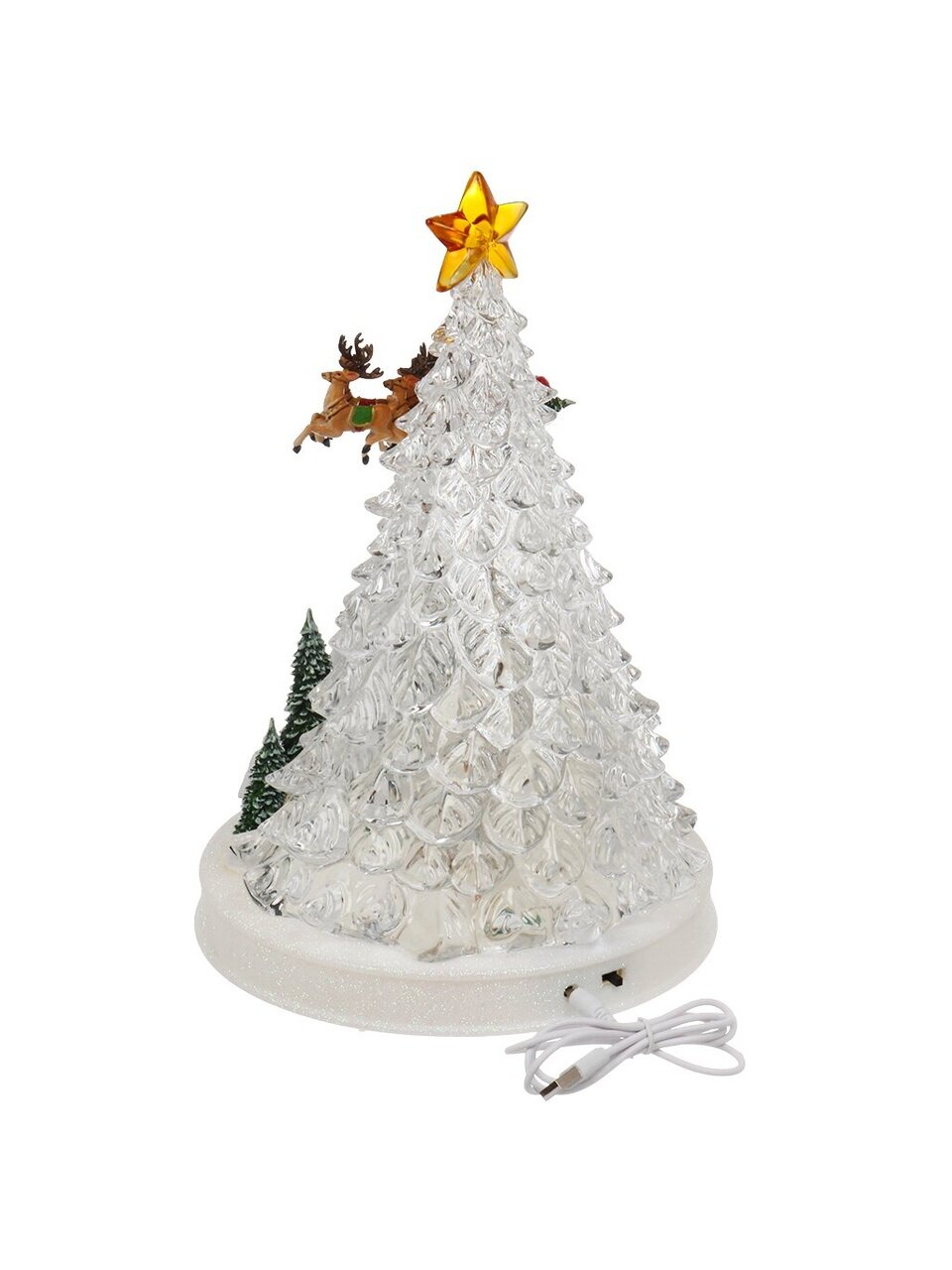 Декоративная фигурка Елка кристалл 31,5 см с подсветкой и музыкой — стильный акцент для дома или подарка, работает от USB и батареек. Создайте атмосферу праздника легко!