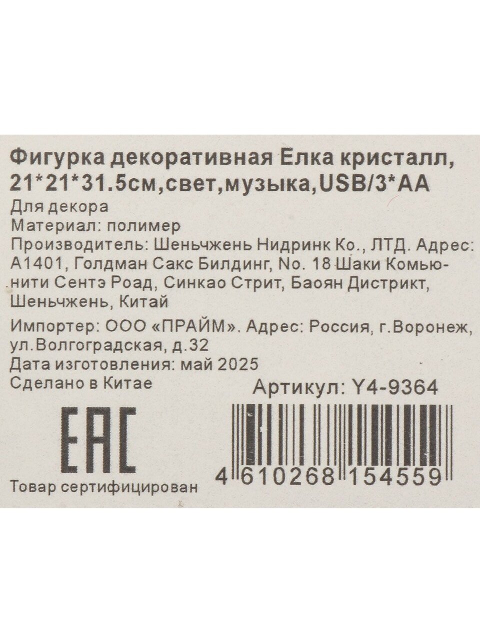Вы можете приобрести «Фигурка декоративная полимер, Елка кристалл, 21х21х31.5 см, свет, музыка, работа от USB или 3АА, Y4-9364» и другие товары в нашем интернет-магазине в Санкт-Петербургe по низким ценам и с бесплатным самовывозом.