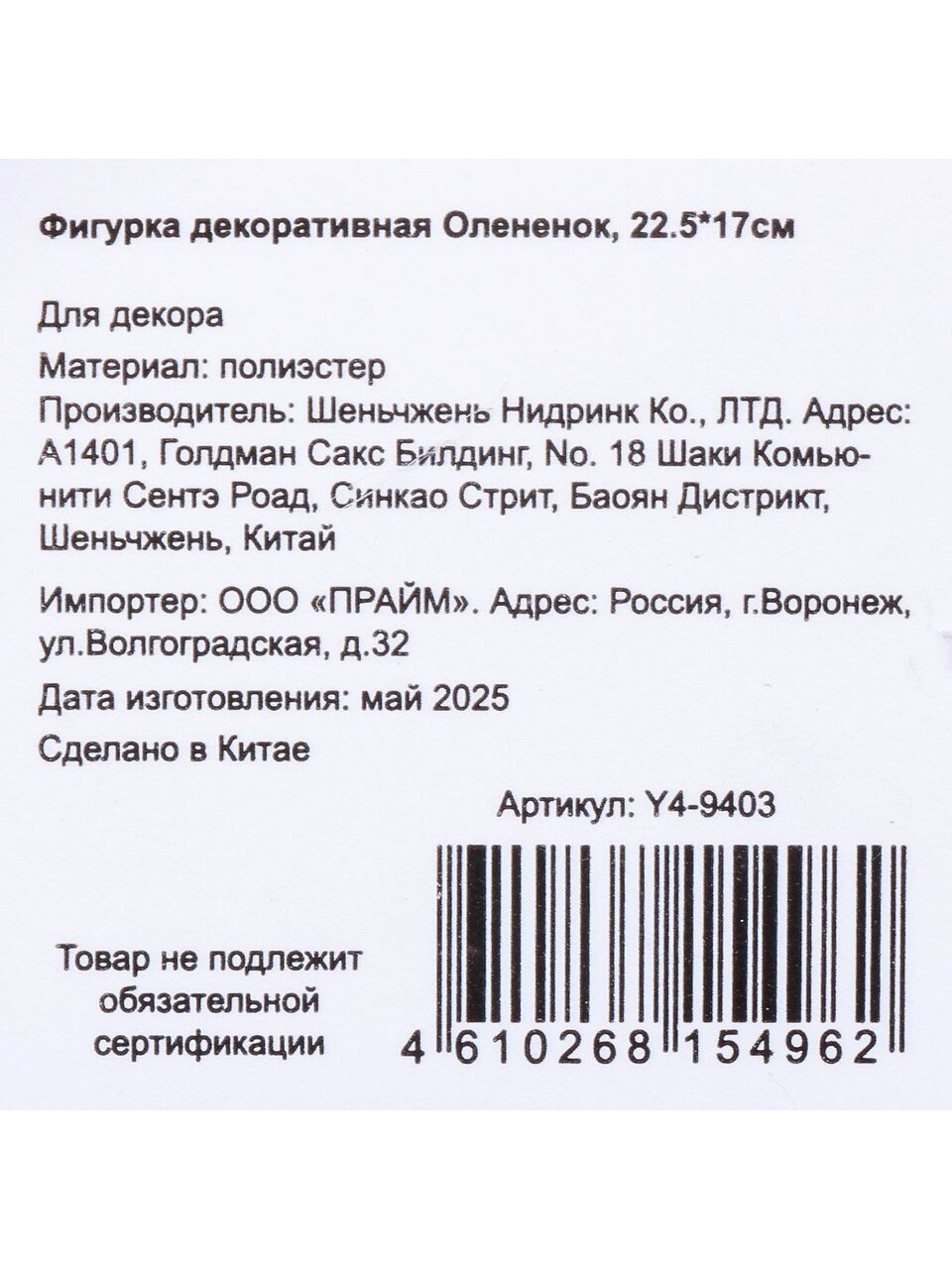 Декоративная фигурка Олененок 22.5×17 см: уют в доме, идеальный подарок на Новый год, долговечный полиэстер, выгодная цена и быстрая доставка.