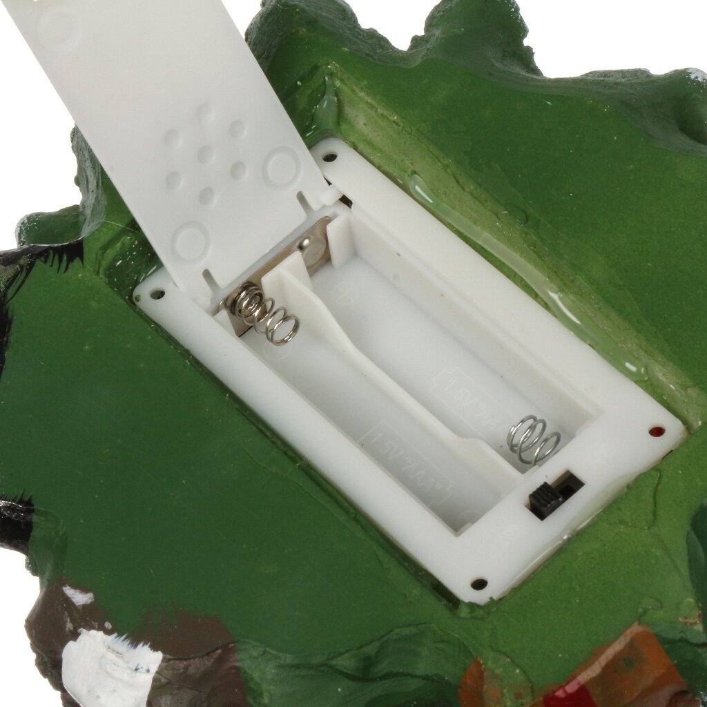 Фигурка оснащена LED-подсветкой и работает от 2 батареек типа AAA. Включение и выключение производится с помощью встроенного переключателя, не требуется подключение к электросети.