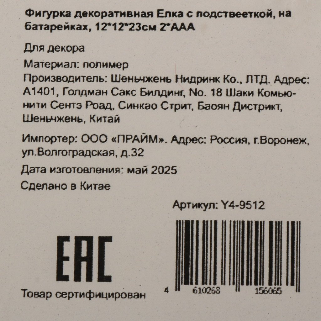 Вы можете приобрести «Фигурка декоративная полимер, Елка, 12х12х23 см, с подсветкой, на батарейках, Y4-9512» и другие товары в нашем интернет-магазине в Таганроге по низким ценам и с бесплатным самовывозом.