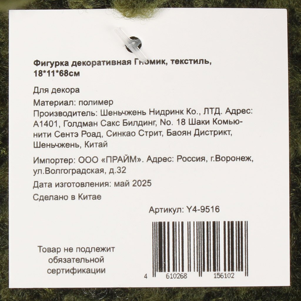 Вы можете приобрести «Фигурка декоративная полиэстер, Гномик, 18х11х68 см, зеленая, Y4-9516» и другие товары в нашем интернет-магазине в Таганроге по низким ценам и с бесплатным самовывозом.