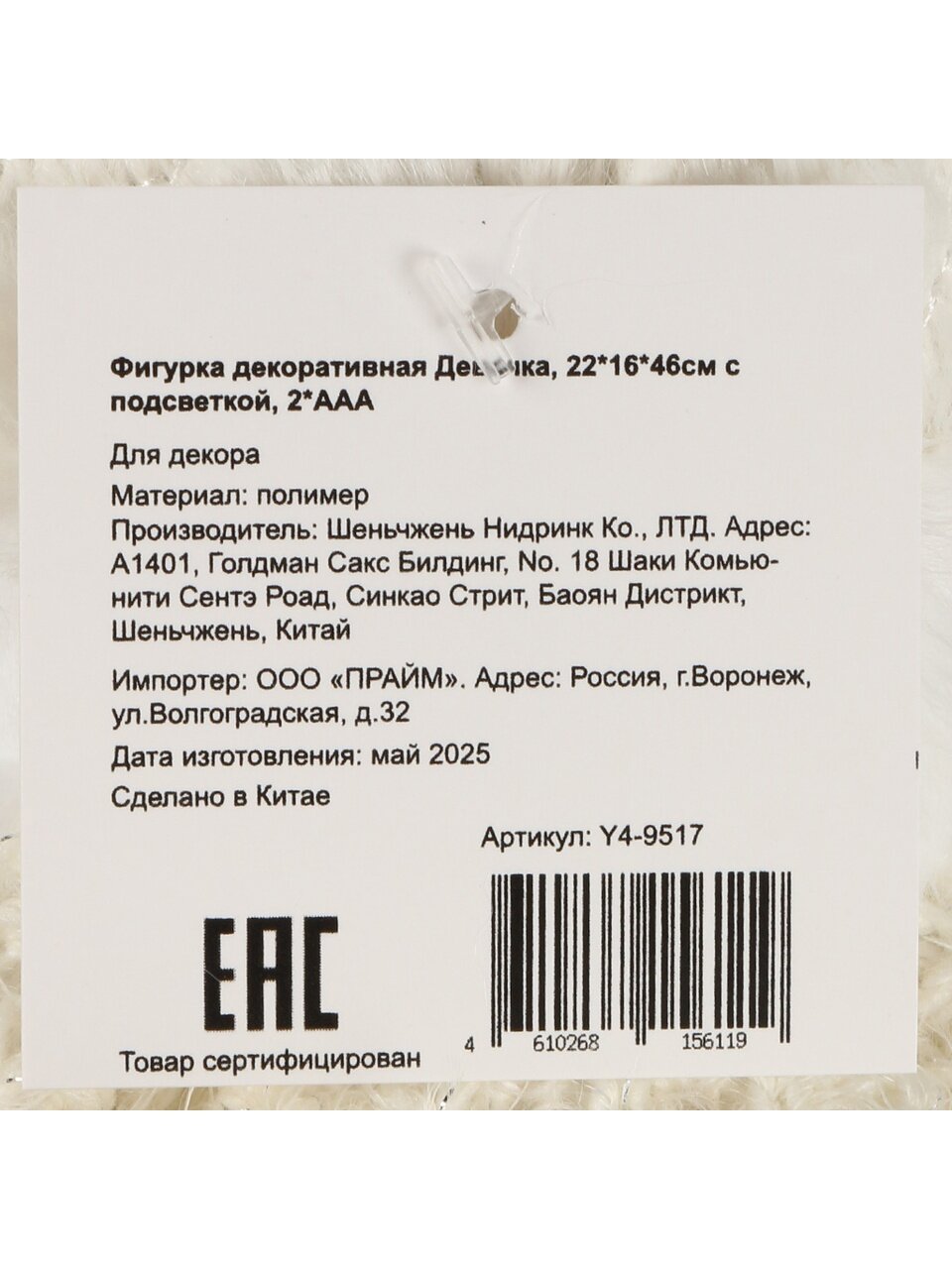 Вы можете приобрести «Фигурка декоративная текстиль, Девочка, 22х16х46 см, с подсветкой, 2хААА, Y4-9517» и другие товары в нашем интернет-магазине в Таганроге по низким ценам и с бесплатным самовывозом.
