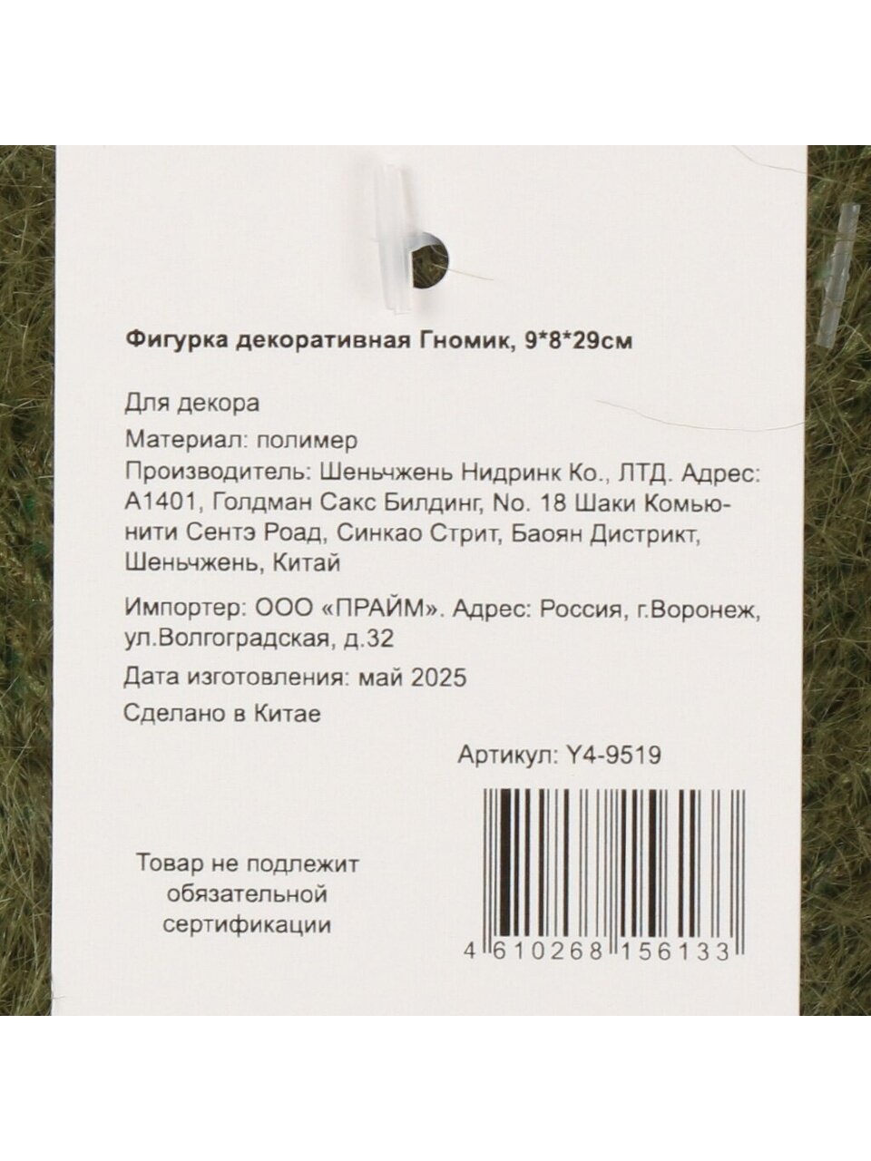 Фигурка декоративная текстиль, Гномик, 9х8х29 см, зеленая, Y4-9519