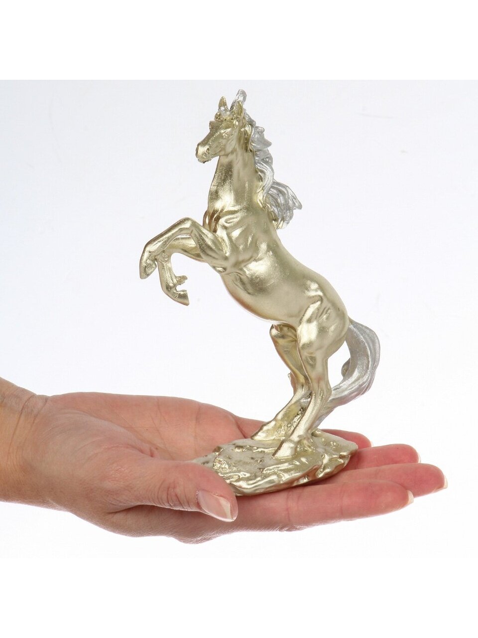 Фигурка декоративная Лошадь 12×16 см из полистоуна: элегантный золотой акцент для интерьера, подарок с символом удачи и стиль для вашего дома.
