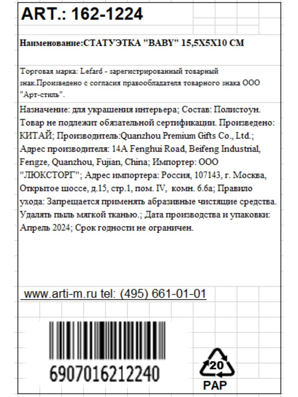 Вы можете приобрести «Статуэтка полистоун, Baby, 15.5х5х10 см, Lefard, 162-1224» и другие товары в нашем интернет-магазине в Нижнем Новгороде по низким ценам и с бесплатным самовывозом.