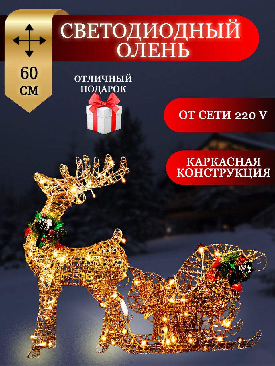 Вы можете приобрести «Фигурка декоративная Олень с санями, 60 см, 100 LED, 220 В, Y4-4118» и другие товары в нашем интернет-магазине в Белгороде по низким ценам и с бесплатным самовывозом.