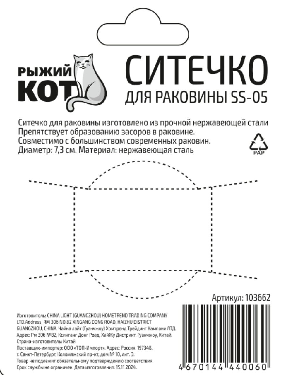 Вы можете приобрести «Фильтр для раковин 7.8 см, нержавеющая сталь, Рыжий кот, SS-05, 103662» и другие товары в нашем интернет-магазине в Краснодаре по низким ценам и с бесплатным самовывозом.