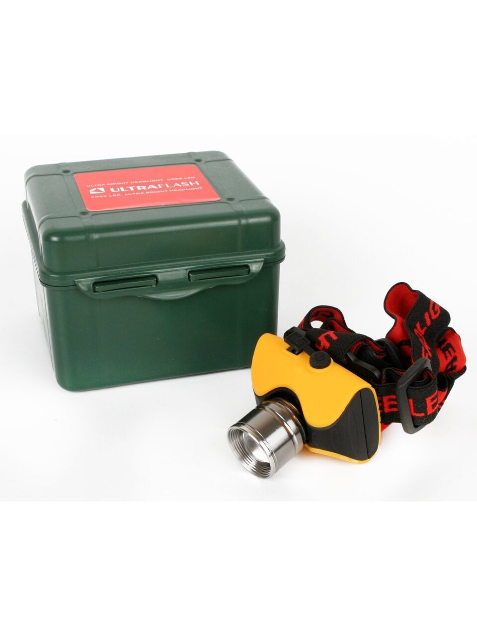 Фонарь Ultraflash электрический светодиодный налобный аккумуляторный. Цвет корпуса: желтый + черный. Материал корпуса - пластик + алюминий. Источник света: светодиод XP-E R3 мощностью 3 Вт, световой поток 110 люмен. Дистанция освещения - до 100 метров. Регулируемый фокус (ZOOM). 3 режима работы: 100% / 30% / мигающий. Выключатель: трехпозиционный кнопочный. Время работы при полностью заряженном аккумуляторе: в режиме 50% - до 3 часов, в режиме 100% - до 1,5 часов, мигающий режим - до 2,5 часов. Время заряда 8 -10 часов. Комплектация: фонарь, ZOOM, Li-on аккумулятор напряжением DC 3,7 В емкостью 0,8 А-ч, адаптер ~230В для заряда от электросети, поворотный отражатель, ремешок, инструкция, упаковка. Степень пыле-влаго-защиты IPX4. Упаковка - пластиковый бокс. Максимальный линейный размер фонаря 8 см. Размер упаковки 9 см x 12,5 см x 12,5 см. Вес без упаковки 0,110 кг. Вес с упаковкой 0,237 кг.