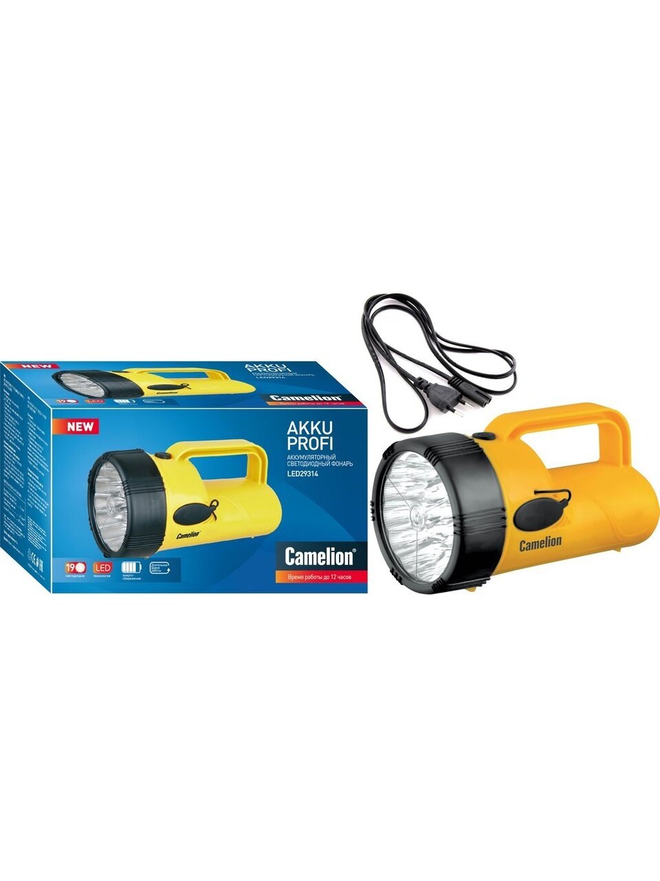 Аккумуляторный фонарь Camelion LED29314, 10471 имеет профессиональное назначение, и применяется в работе специальных служб - ремонтные бригады, МЧС и т.д., для работы в условиях плохой освещенности, или любителями активного отдыха - на рыбалке или в туристическом походе. Прибор способен работать до 12 часов без дополнительной подзарядки аккумулятора. Заряжается от сети в 220В. Емкий свинцово-кислотный аккумулятор обеспечивает низкий коэффициент саморазряда. В комплекте имеется сетевой кабель для заряда аккумулятора.