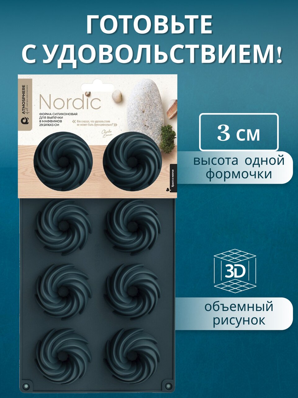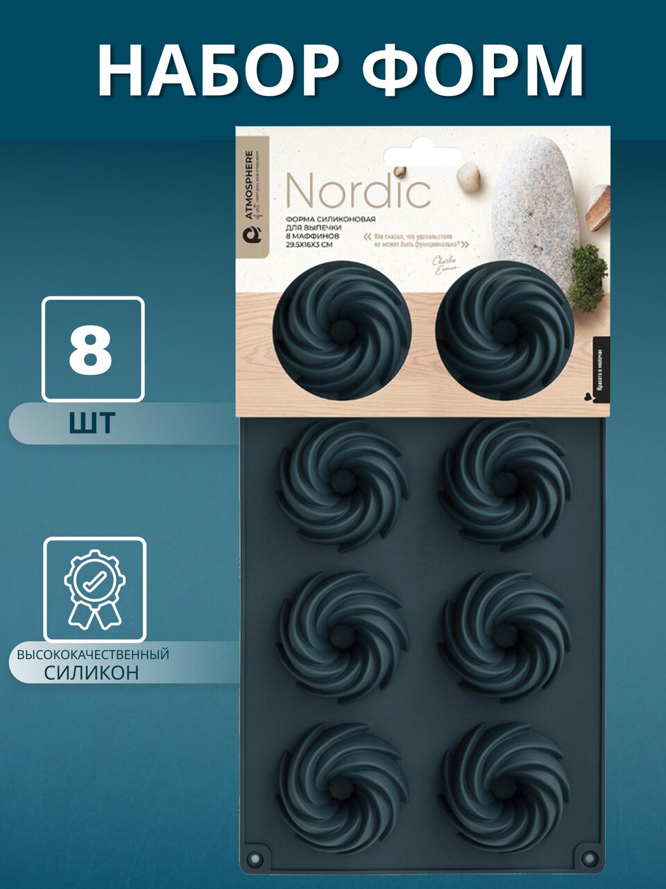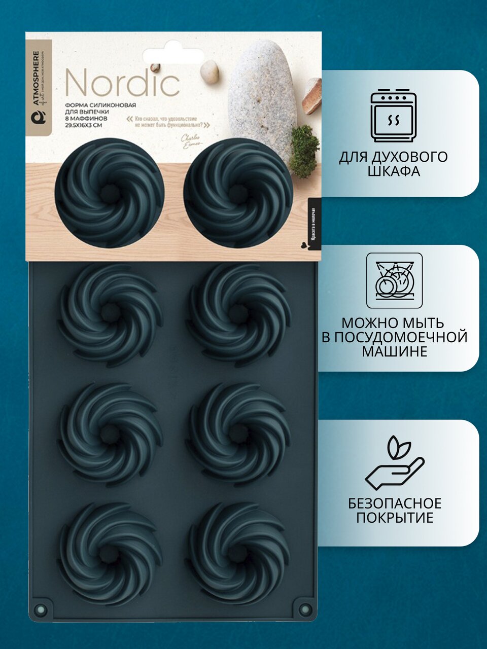 Силиконовая форма для маффинов Atmosphere Nordic: 8 кексов за 1 выпечку, антипригарная, легко мыть, идеальна для дома, дачи и подарка.