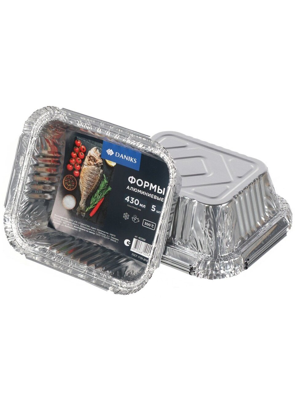 Форма для запекания Daniks, набор 5 шт: оптимальный размер 14.4×11.9×4 см, жаропрочный алюминий — удобно для пирога, хлеба, на дачу или пикник.