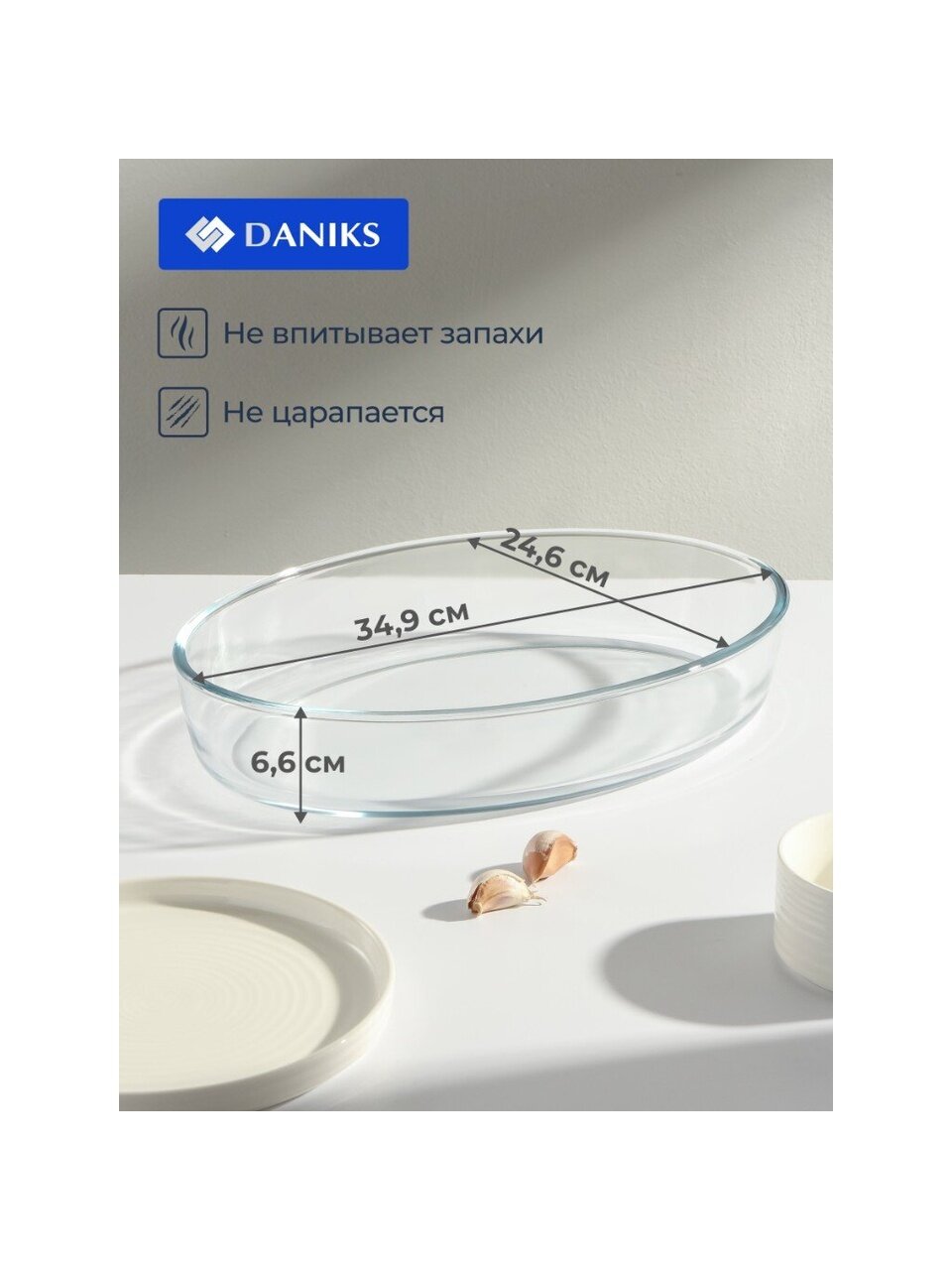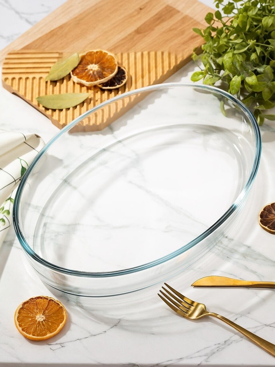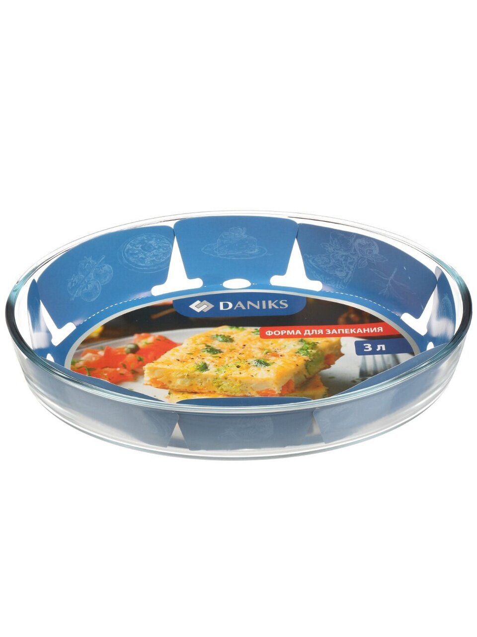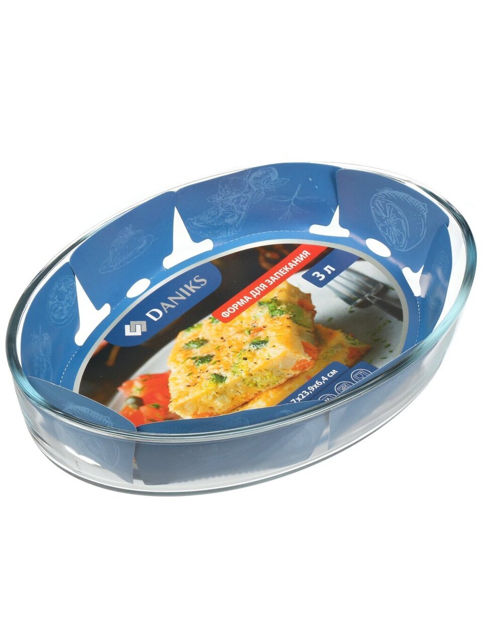 Овальная стеклянная форма для запекания Daniks 3,2 л: удобно готовить курицу, рыбу и пироги для всей семьи. Безопасно для духовки, СВЧ и посудомойки.