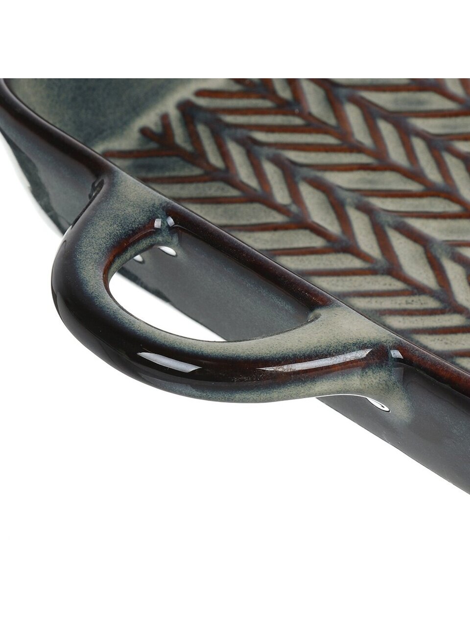 Если вы выбираете, что лучше для запекания на даче или дома, обратите внимание на Attribute Glaze: она подходит для использования в духовке и СВЧ, не требует специальных условий хранения, а стильный сине-коричневый дизайн украсит любую сервировку.